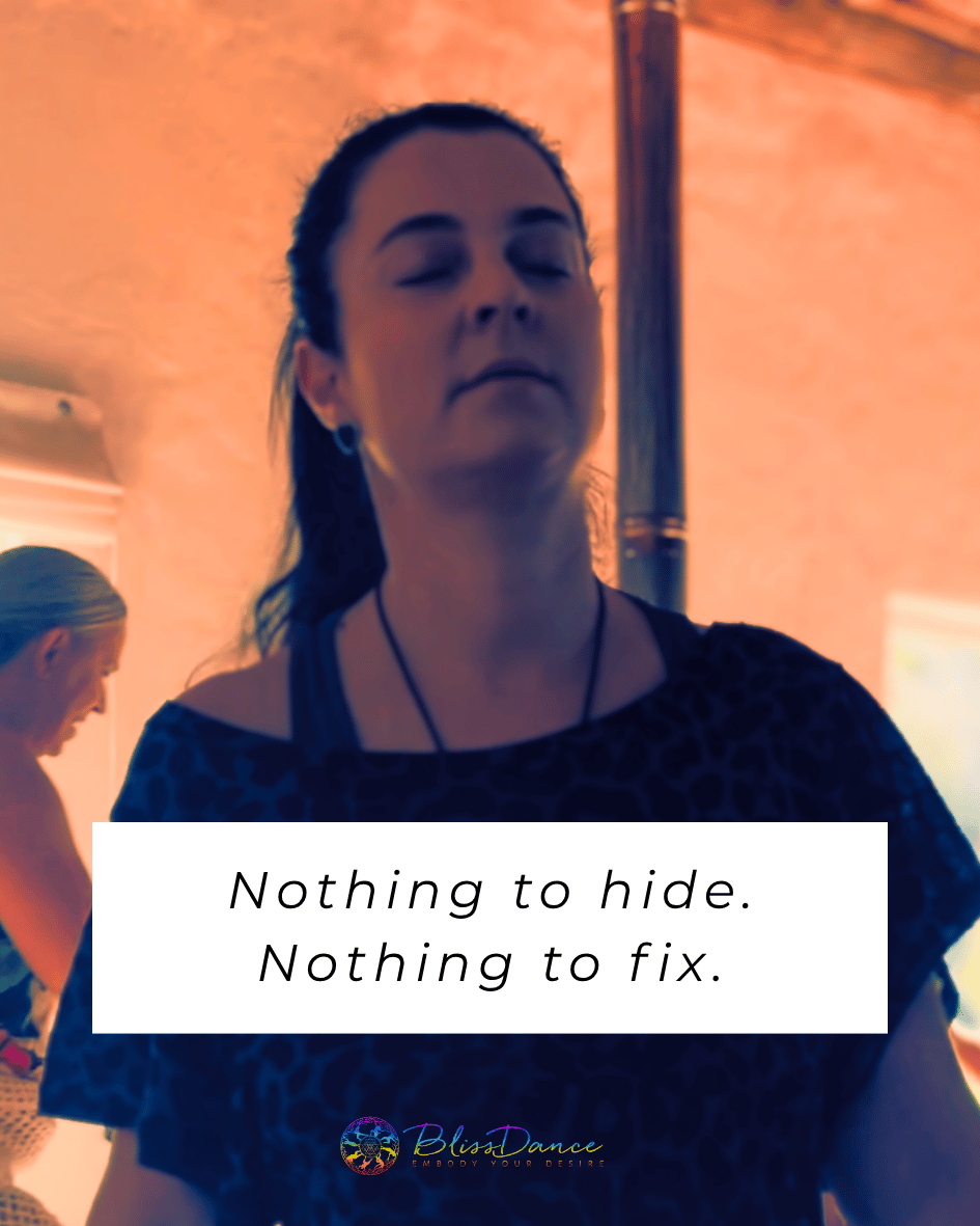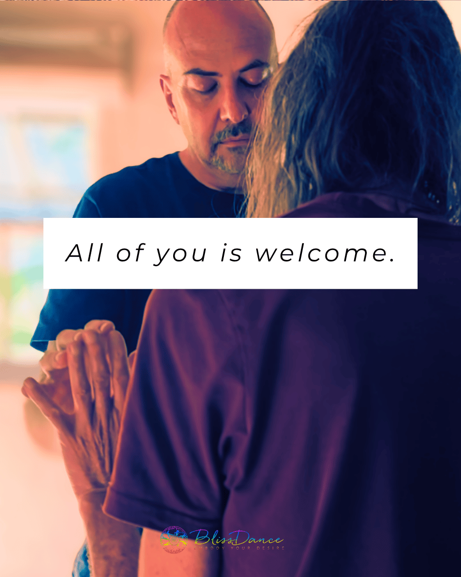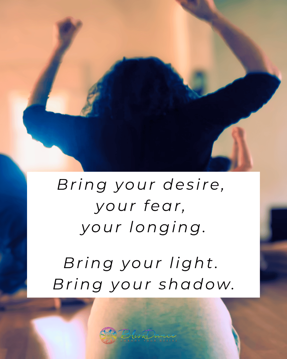BlissDance invites us to bring our sadness and tears, bring our joy and playfulness, bring our brokenness, and perfect imperfection, bring our shadow, and bring our light – all of you is welcome here.