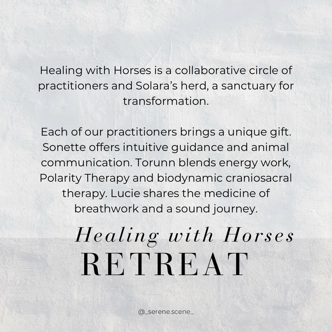 Bookings: https://healingwithhorses.co/book-your-appointment/ola/services/healing-retreat-26-october