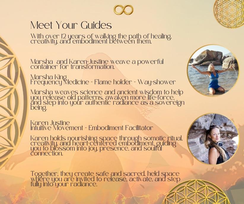 Day 1 – Release & Soften: We open with a warm welcome, cacao circle, and gentle movement, then lift into an uplifting garden dance.